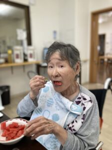 今日のおやつは、なんと、スイカです(*^-^*)