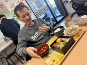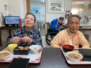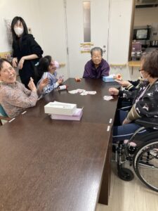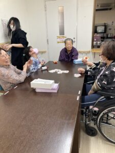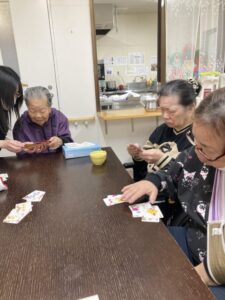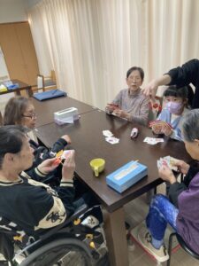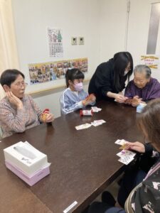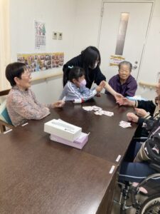 利用者様と、職員の可愛い子供ちゃんとトランプや