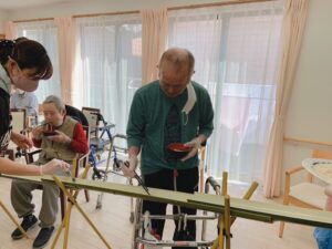さて今月の催し物は夏と言ったら「流しそうめん」です!自宅ではやったことがなく、上司が道具を貸して下さるということで、私にできるのか不安でしたが、