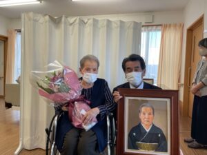 先日市長が施設に訪れて下さり、寄贈された肖像画をご本人に贈呈してくださいました。