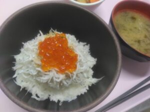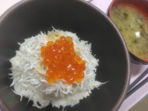 朝ごはんは、シラスいくら丼