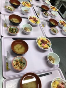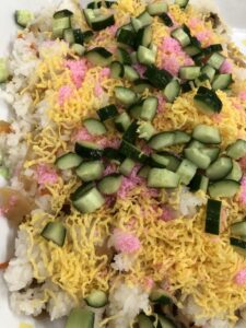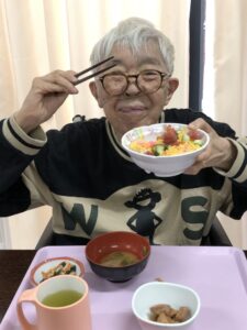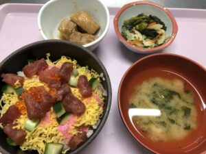 お昼はマグロちらし寿司、