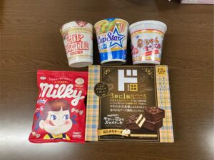 お好きなカップ麺、お菓子をプレゼントさせていただきました(*^-^*)