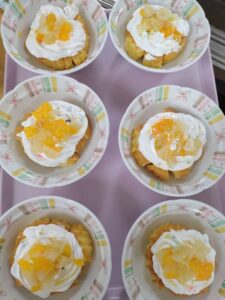 生クリームとフルーツの缶詰でデコレーションしましたら