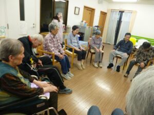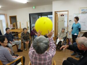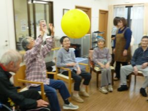 ハートリンク焼津は壱番館・弐番館と二つの建物があります。今回は二つの館が合同で風船バレーを行いました。
