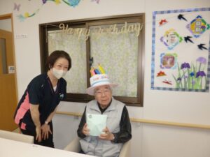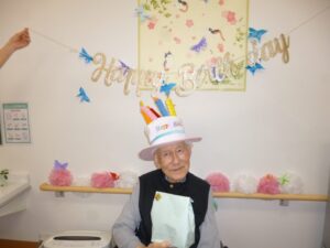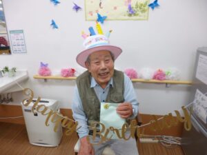 今月のお誕生日会の様子です。皆様8◇歳とは思えないお若い笑顔です。