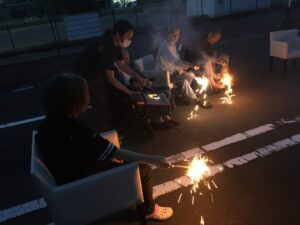 花火を行うには外はまだ明るかったですが、