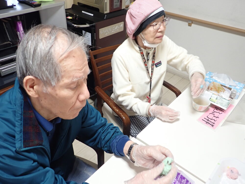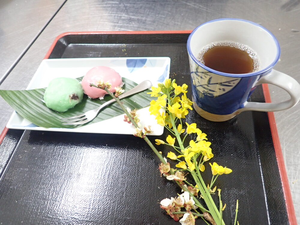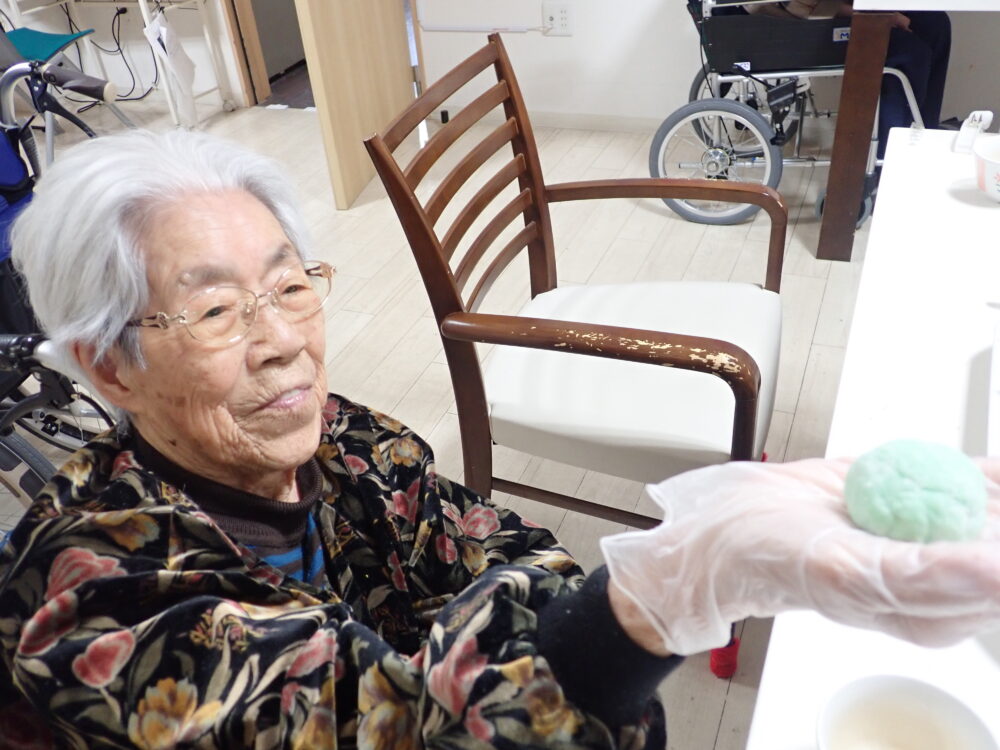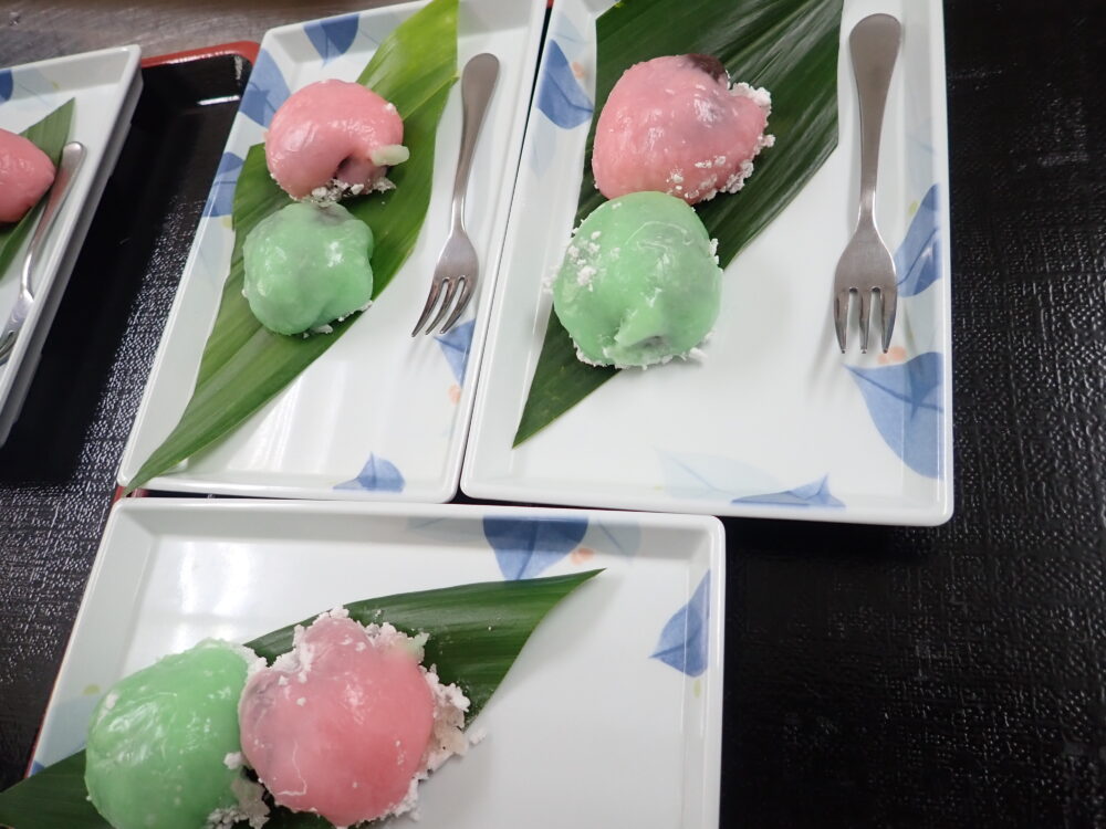 おやつの時間では、春餅(二色)を一緒に作りました(^^)/