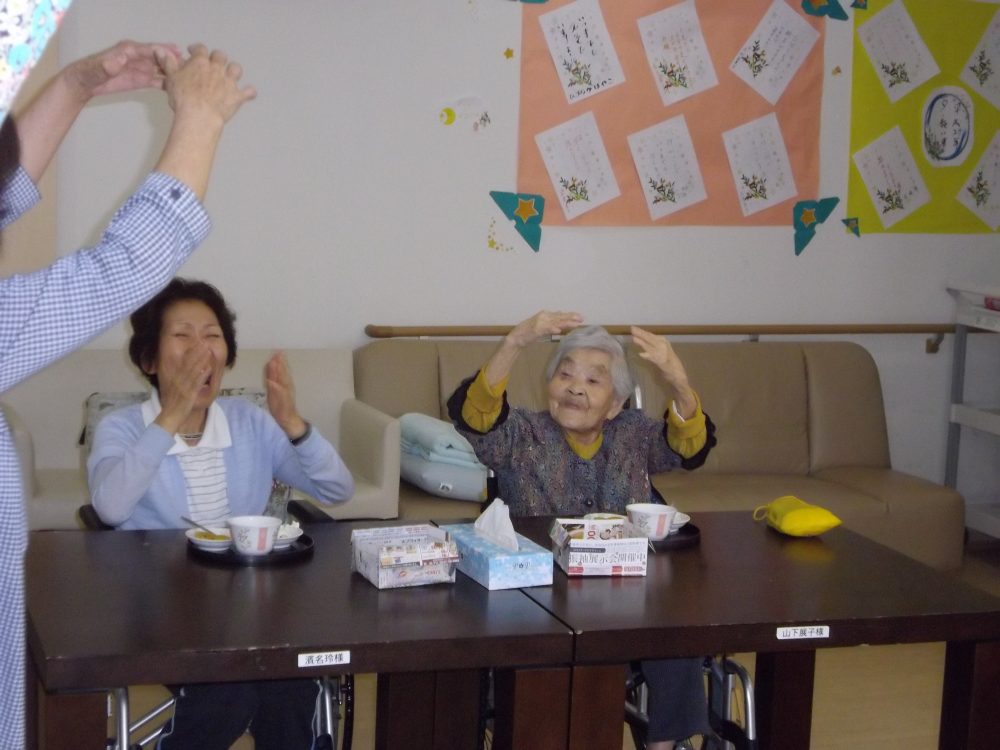 うさぎの目を入居者様に描き入れて頂き、「失敗した~。」「かわいいね」と楽しみながら作り、