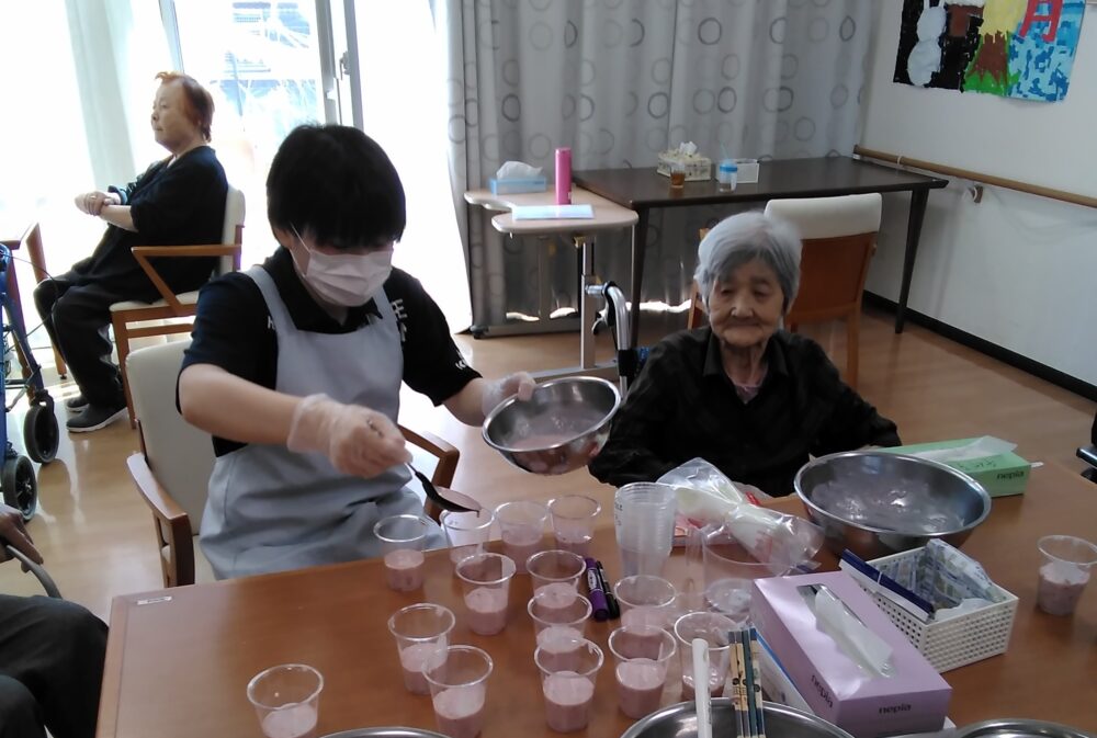 おやつの時間に皆さんでフルーチェ作りをしました~😆