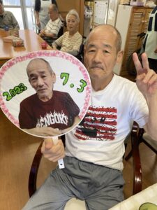 まずは、お誕生日の3名の方に手作りうちわのプレゼント✨