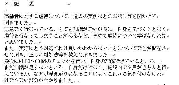 今回は現場職員のための高齢者虐待研修を開催しました!講師は運営統轄本部長・柴田先生に講演して頂きました。ざっくり虐待と言っても、様々な虐待があり、ひとつ、ひとつ学びました。