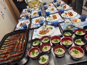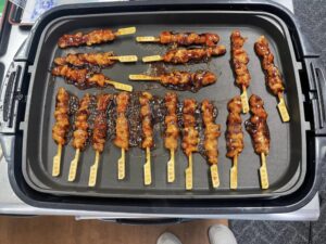 みんなでワイワイ焼き鳥を食べてビール風りんごゼリーも食べて居酒屋気分🏮
