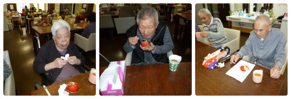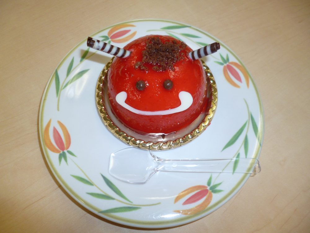 そして、おやつに赤鬼のケーキを食べました(*´▽`*)♪