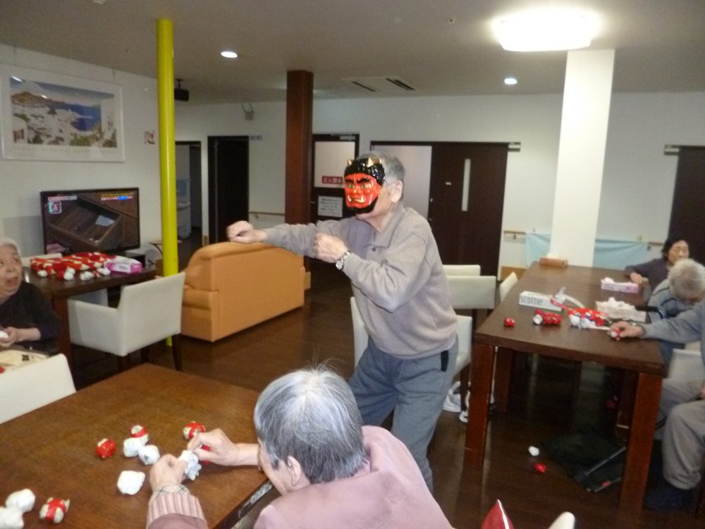 助っ人で入居者の方が赤鬼に化けてくれましたよ(・▽・)ノ