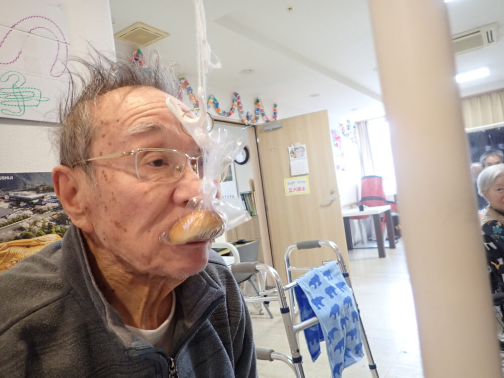 提供するのではなく、パン食い競争を行いました😋✨