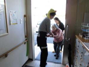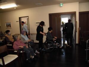 慌てずスタッフの誘導の元、車椅子のご利用者様から避難いたしました。