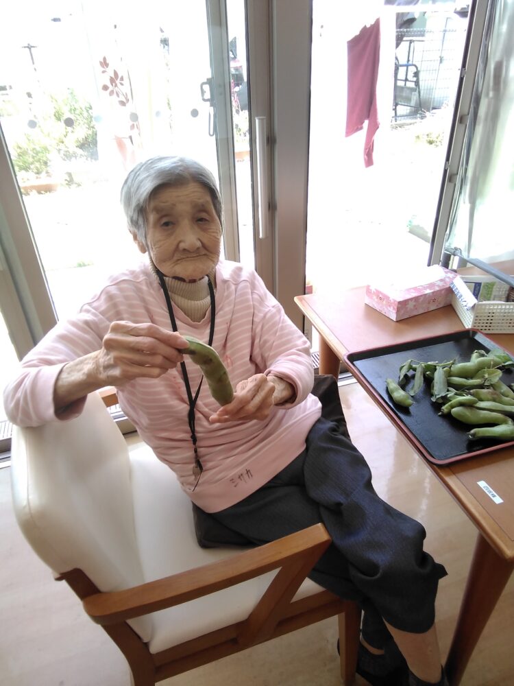塩ゆでにしてお昼ご飯におつけしました。「おいしいわぁ!」とっても喜んで下さいました