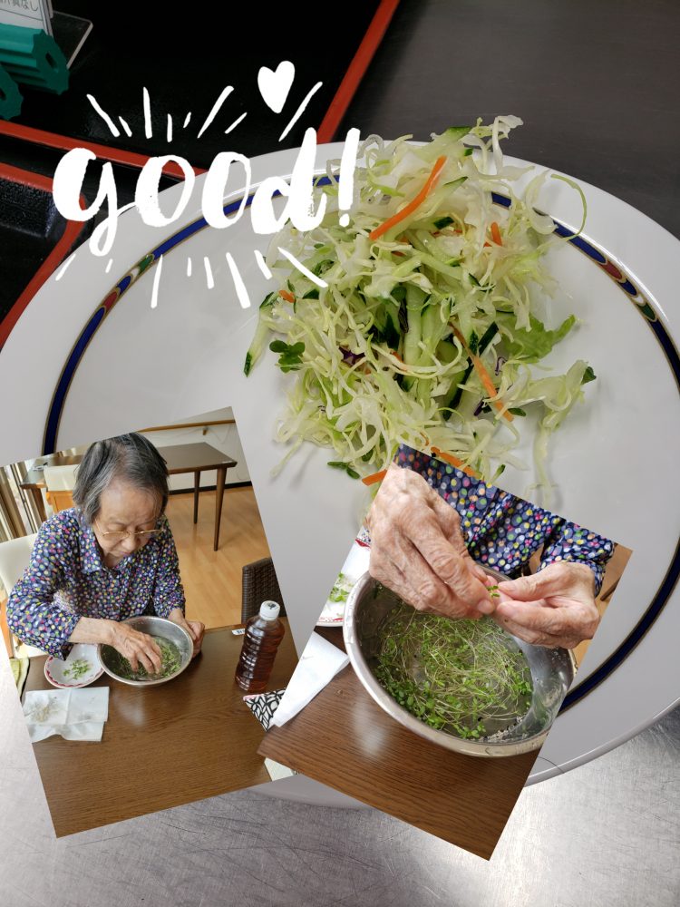 今朝、取れたての春菊の間引き菜もしっかりサラダに使いました~♡