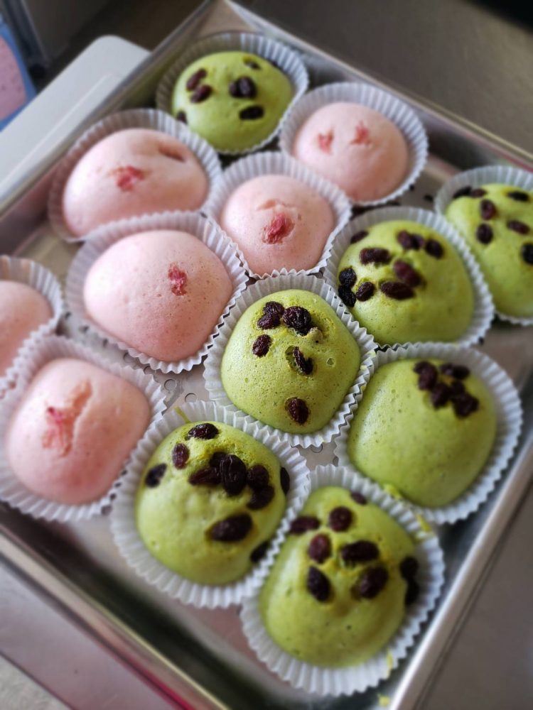 ~またまた桜色~桜蒸しパンと抹茶蒸しパン~in 岡北
