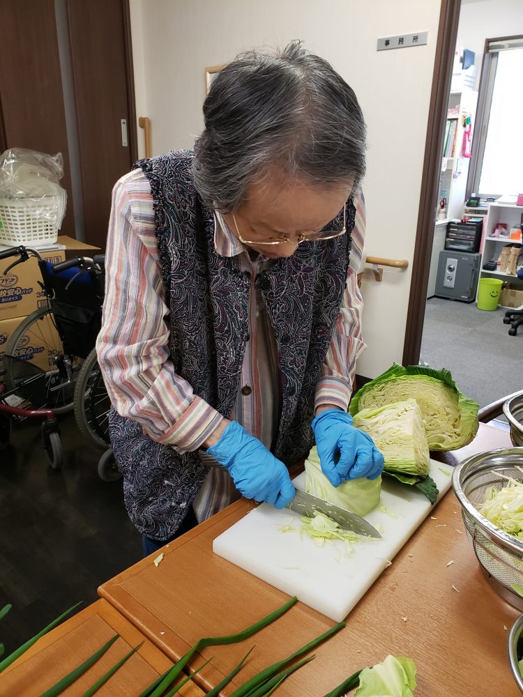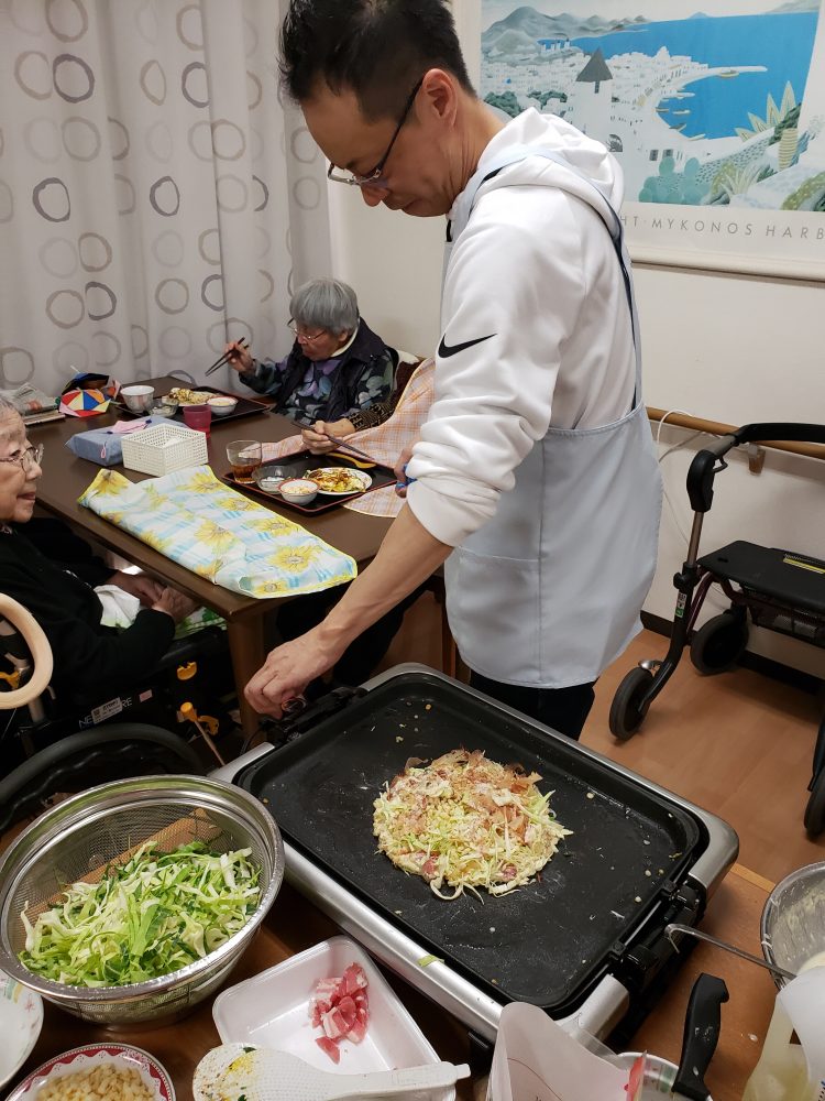 さあ始まりました~今日はお好み焼きを作りますよ~(^^)/H様が手伝ってくれています。手際が良いですね!!