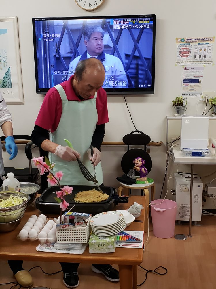 焼きはじめてますね~いつも自宅で披露している技を見せてくれていますね~”(-“”-)”安井職員の焼きが入ります~