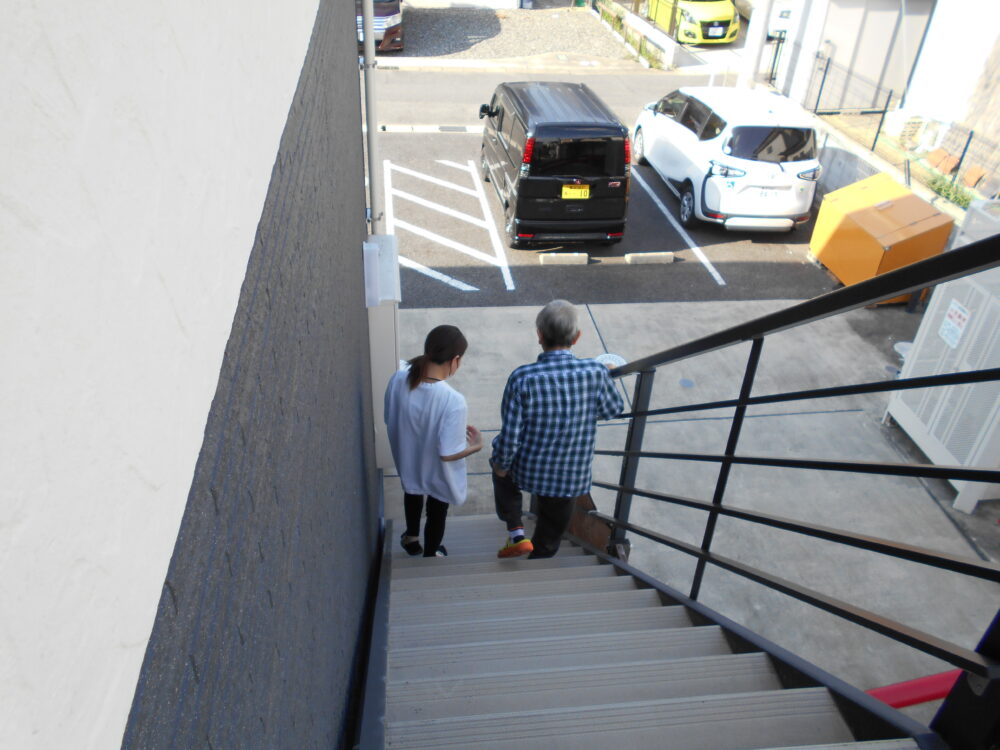 厨房からなので、1階2階の非常口、階段を使った避難も