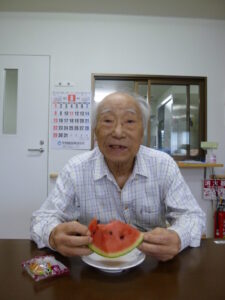 とっても協力的でお優しい利用者様に助けられ、盆踊り無事終了し、スイカとミカンをお配りして召し上がって頂きました(^^♪