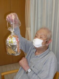 今月のイベントは、職員お手製のかわいい紐くじ箱からお茶菓子を引き、新茶を味わいながら召し上がりました。
