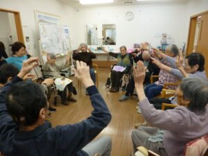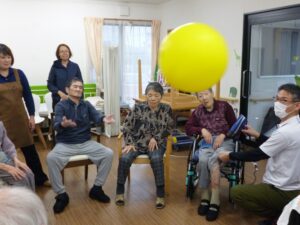 ハートリンク焼津は壱番館・弐番館と二つの建物があります。今回は二つの館が合同で風船バレーを行いました。