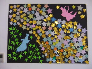 さて今月の壁画紹介です。皆さま思い思いの場所に星を貼っていただきました☆